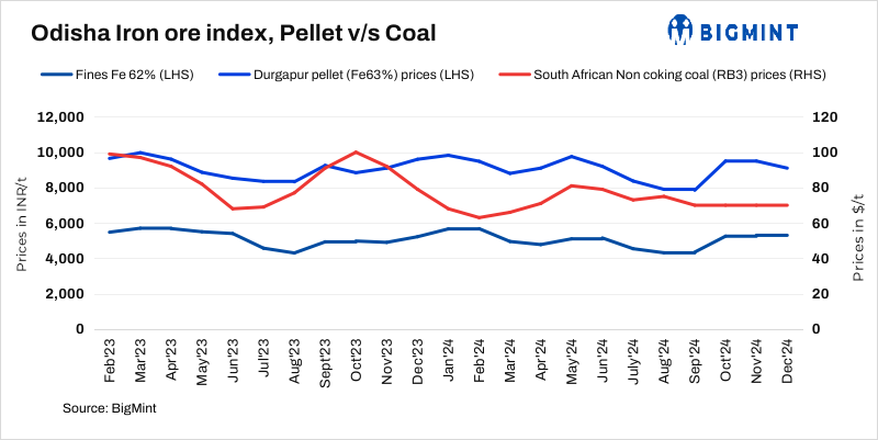 BigMint’s Odisha iron ore fines (Fe 62%) index stood unchanged at INR 5,250/t ($62/t) ex-mines on 7 December 2024. Private miners had no offers for iron ore amid uncertainty in the market. Around 150,000 t iron ore deals were recorded this week from the Odisha region.