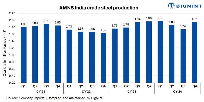 AMNS India’s crude steel production, shipments rise q-o-q in Q4CY’24