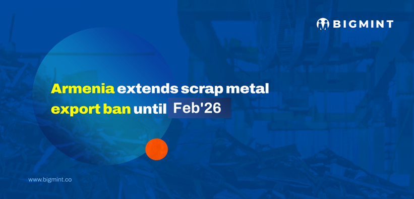 Armenia has extended its ferrous and non-ferrous scrap metal export ban until 1 Feb’26 to ensure local supply for its metal industry, following the initial ban imposed on 7 Nov’24. High import costs make domestic scrap essential. Since the ban, steel production has risen notably, and Armenia’s scrap consumption is expected to grow by 65-70%, reaching 250,000 t annually. The move aims to reduce import reliance and strengthen Armenia’s strategic metal sectors.