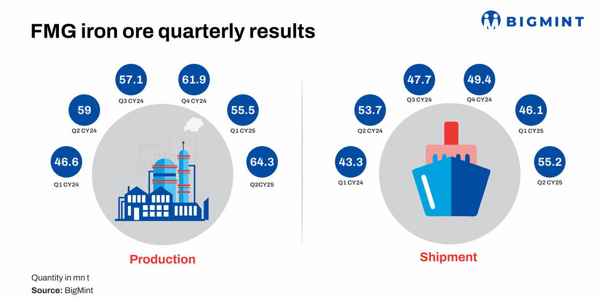 • Iron ore shipments rise 20% q-o-q in Q2CY’25