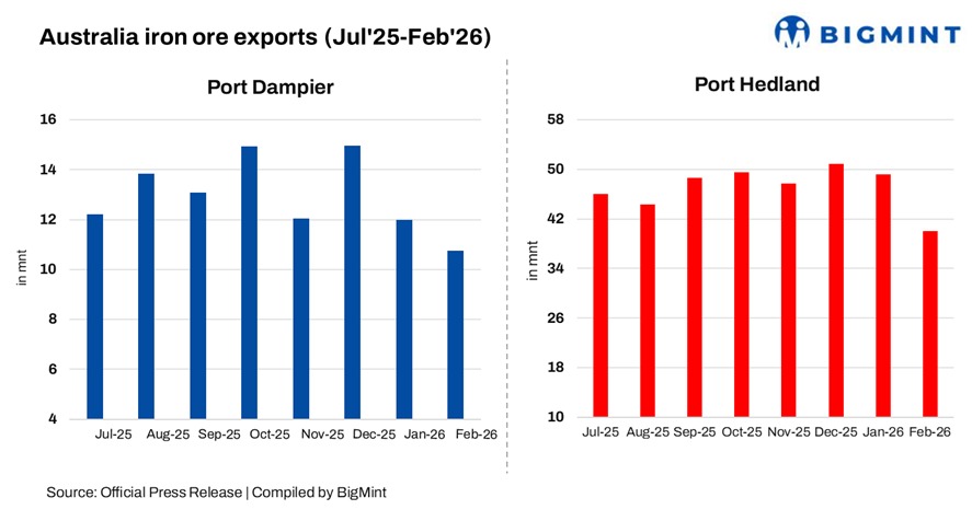 Rio Tinto has resumed iron ore port operations in Western Australia’s Pilbara region after Tropical Cyclone Narelle passed, with ship loading restarting at key terminals on 28 Mar’26. While repairs at Cape Lambert A are ongoing, operations are expected to fully normalise soon. Despite the disruption, Rio Tinto has maintained its 2026 shipment guidance of 323-338 mnt.