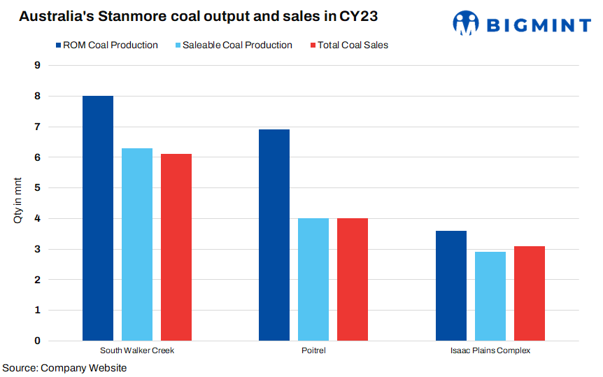 Australian mining company, Stanmore, achieved total production of 13.2 mnt of saleable coal at full capacity in CY’23, marking a significant increase of 43.47% from 9.2 mnt produced in CY’22.