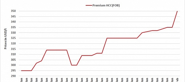 Australian premium hard coking coal prices rose by $15/t d-o-d to $350/t FOB on 1 Feb’23. Prices rose amid supply tightness because of the closure of rail corridor in Queensland and wet weather in Australia. In addition, strong global demand also supported prices. However, Indian buyers remained on the sideline amid elevated offers.
