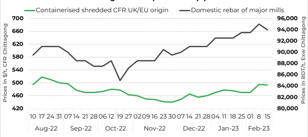 Although the market for ferrous scrap in Bangladesh is quiet, LC openings are getting a little more accessible, which helps the major mills meet some urgent demands. After the abrupt calamity in the Turkish region, prices for ferrous scrap are generally moving downward.
