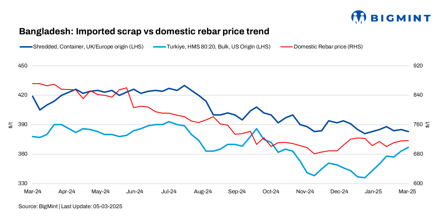 “Around 8,000 t of Singapore-based HMS (80:20) were sold at $360/t CFR Chattogram. Australian HMS offers remained at $360/t, with a slight improvement in LC conditions providing some relief. Market recovery is expected post-Ramadan,” highlighted a major Dhaka-based trader.