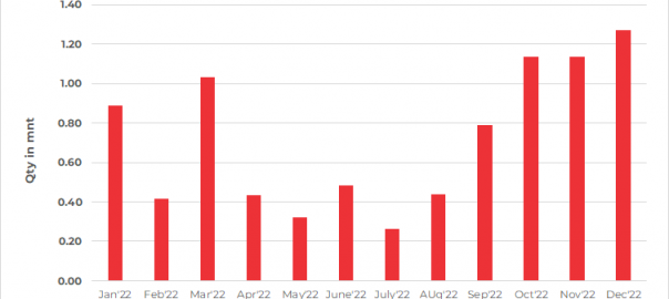 Bangladesh thermal coal imports in Dec’22 were recorded at 1.27 mnt, up 12% as against 1.13 mnt in Nov. Imports increased from Indonesia by 13% to 1.04 mnt, while shipments from Australia rose by 9% at 110,000 t. Imports South Africa rose to 60,500 t, while there were nil shipments from China.