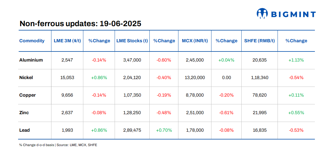 Base metals prices on the LME remained range-bound d-o-d, with nickel gaining the highest, 0.86% to $2,658/t. Meanwhile, inventories at LME-registered warehouses declined for all commodities, barring lead. Additionally, BigMint assessed domestic copper armature scrap at INR 805,000/t ex-Delhi, firm d-o-d. Aluminium Tense scrap remained stable d-o-d, with ex-Delhi at INR 197,000/t and ex-Chennai at INR 198,000/t.
