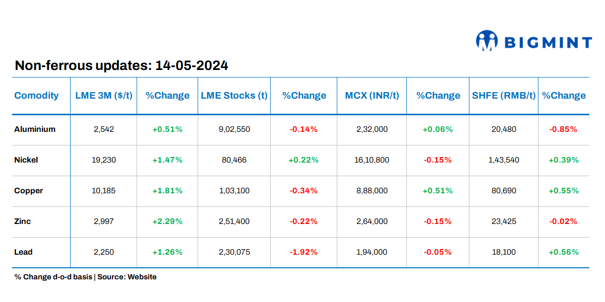 Base metals prices on LME gain, stocks witness outflows barring nickel