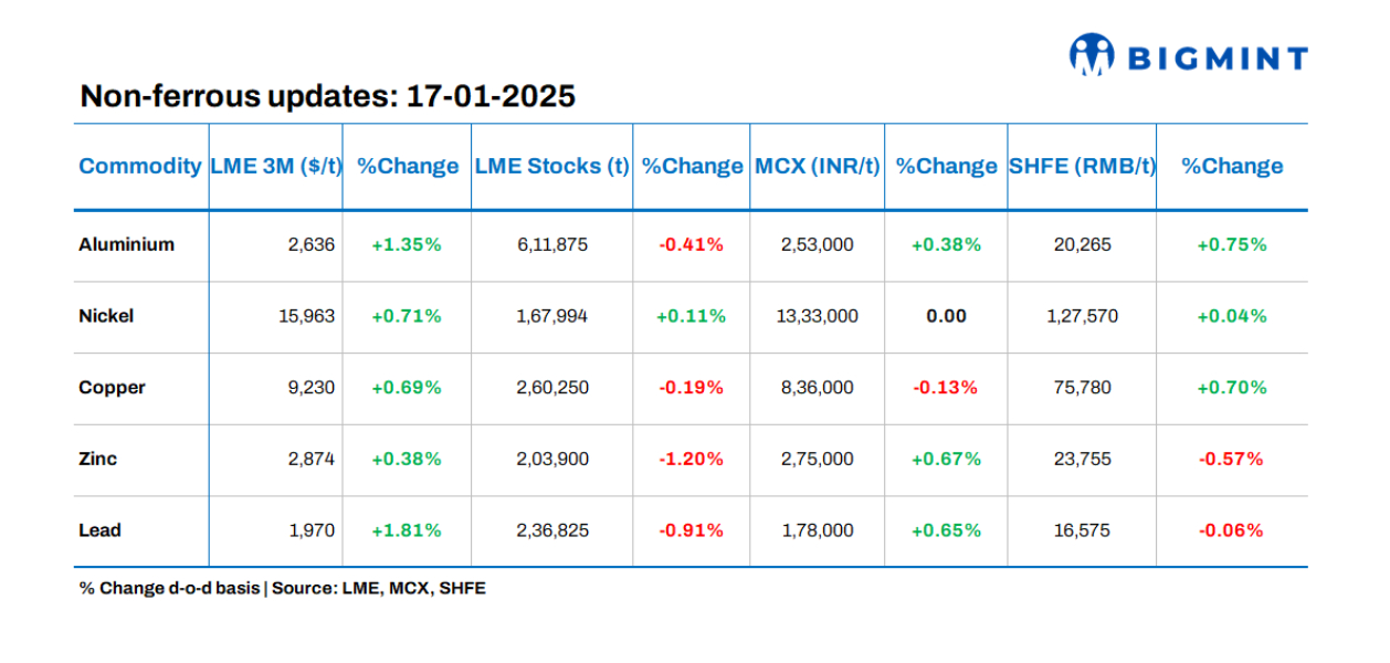 Base metals prices on the London Metal Exchange (LME) showed positive trends, with lead recording the highest gain of 1.81% d-o-d. Meanwhile, inventories at LME-registered warehouses witnessed negative movements, with zinc decreasing by 1.20% d-o-d.