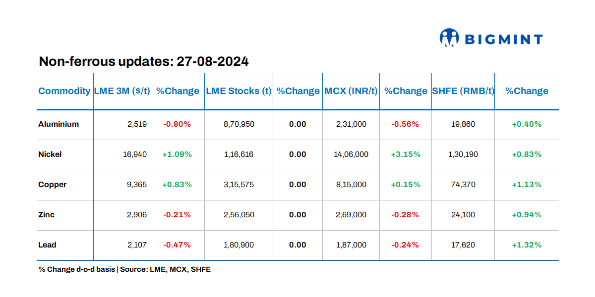 Base metal prices on the London Metal Exchange (LME) mostly exhibited mixed trends, with nickel leading the gains with a 1.09% increase. However, Aluminuim prices declined by 0.90%. Despite these gains, metal stocks at LME-registered warehouses remained stable as LME was closed on previous day.