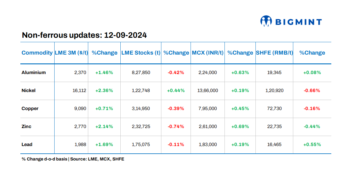 Base metals prices on the London Metal Exchange (LME) mostly exhibited positive trends, with nickel witnessing the largest gain by 2.36%. Meanwhile, metal stocks at LME-registered warehouses showed negative movements except nickel which stood at 0.12 mnt, up by 0.44%
