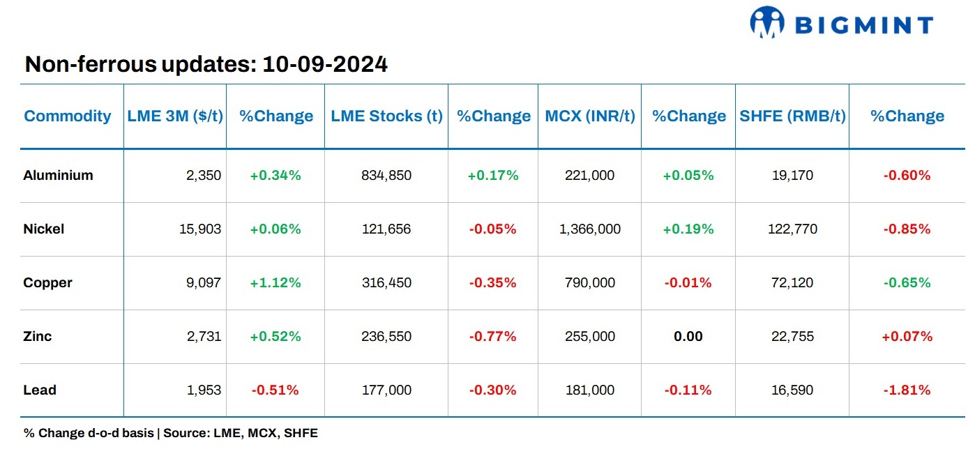 Base metals prices on the London Metal Exchange (LME) mostly exhibited positive trends, with copper witnessing the largest gain by 1.12%. Meanwhile, metal stocks at LME-registered warehouses showed negative movements.