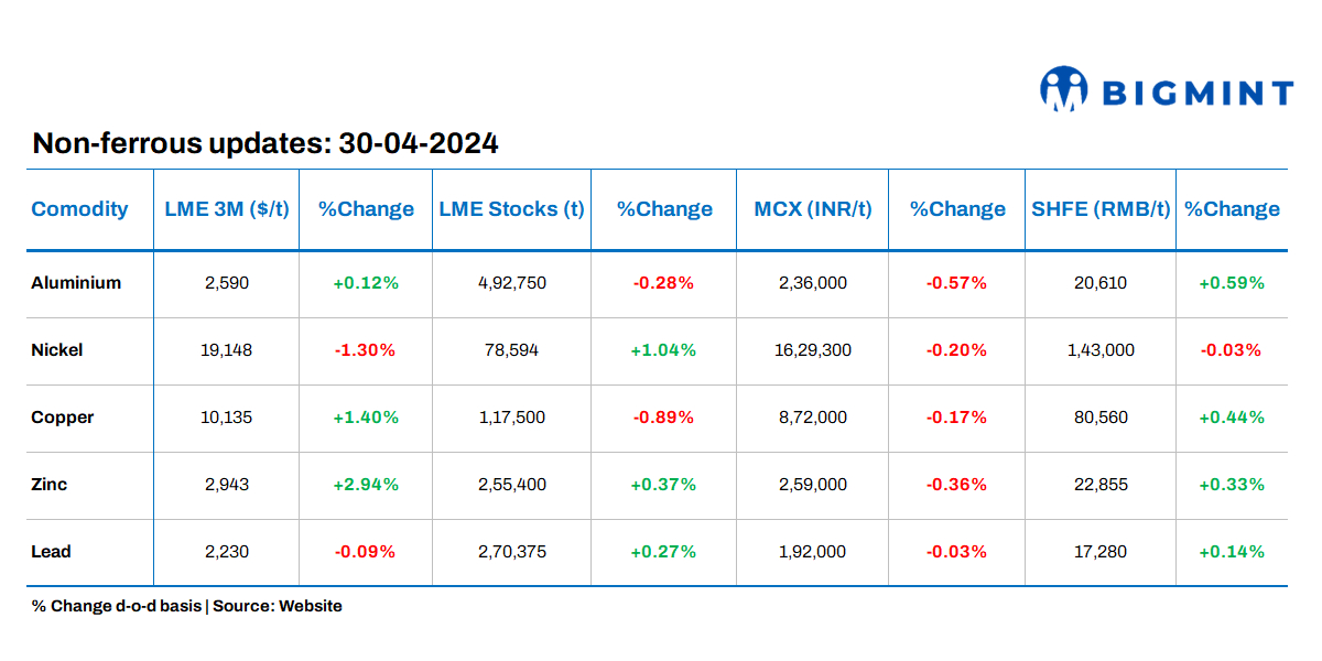 Base metals prices on LME witnessed varied trends at yesterday’s closing with the highest gain seen in zinc. Meanwhile, India’s domestic market also witnessed mixed trends aligned with the global market. China’s manufacturing expanded fastest in 14 months in April, driven by a surge in new export orders. Japan’s factory output surged 3.8% in March, driven by automakers resuming production after safety scandals.
