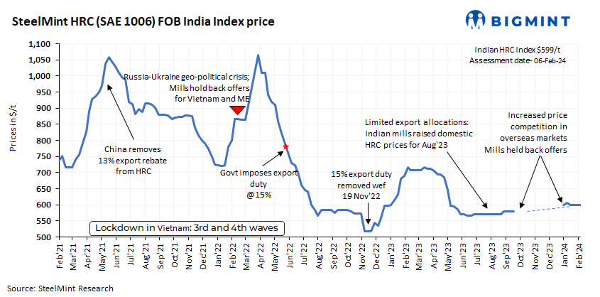 BigMint: India HRC export index largely stable in recent deals to ME, Chinese holidays