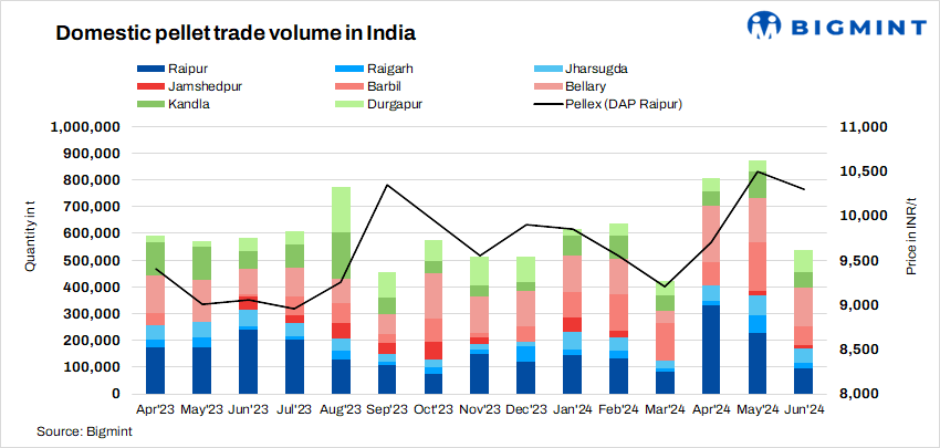 BigMint: India’s domestic pellet trade volumes fall nearly 40% m-o-m in Jun’24