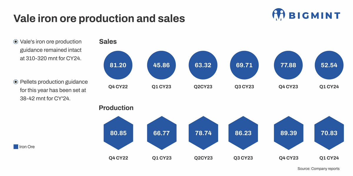 Vale’s iron ore production guidance remained intact at 310-320 mnt for CY’24.