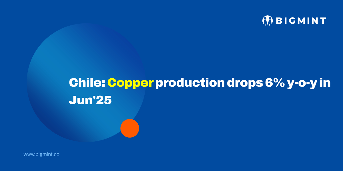 Chile’s copper output dropped 6% y-o-y in Jun’25 to 424,390 t, according to the National Institute of Statistics (INE). The decline follows a sharp increase in May, highlighting ongoing volatility in the world’s top copper-producing country. Operational issues and the mining of lower ore grades are believed to have primarily contributed to the drop, though strong domestic manufacturing growth helped limit the decline, as per reports.