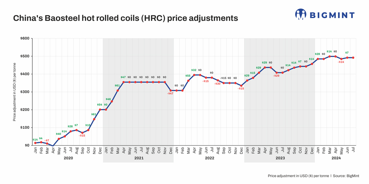 China: Baosteel rolls over HRC prices for Jul’24 sales