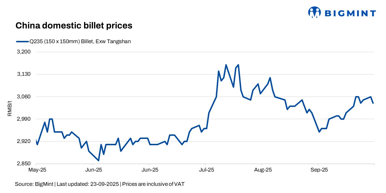 China: Billet prices down $3/t as weak demand, high inventories weigh on sentiment