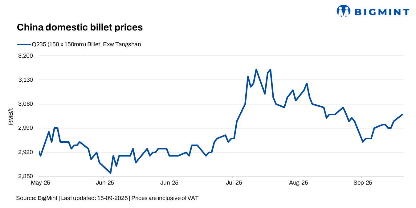 • Billet prices in Tangshan rose RMB 20/t ($3/t) from last closing (Friday) to RMB 3,030/t ($426/t), while SHFE Jan’26 rebar edged up by RMB 9/t ($1/t) to RMB 3,136/t ($440/t).