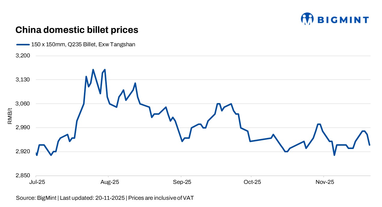 China: Billet, rebar prices soften amid weak demand, falling raw material costs