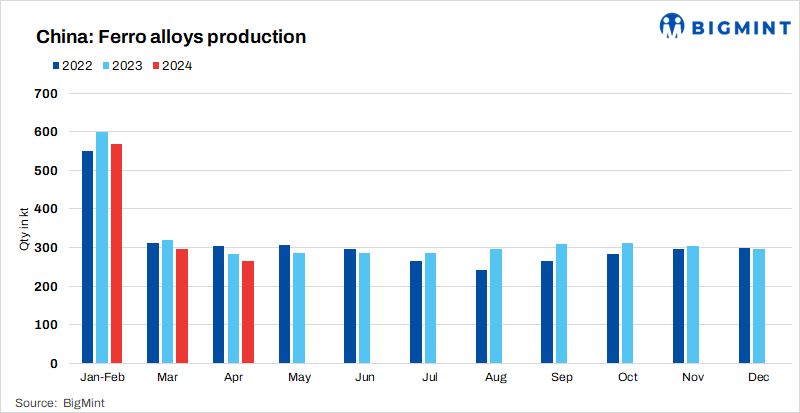 China: Ferro alloys production down 3% y-o-y in Jan-Apr’24