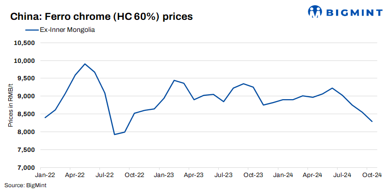 Chrome ore market remains stable on supply concerns: The chrome ore market is currently stable, with prices remaining unchanged across grades. With the ferro chrome market no longer witnessing price reductions, chrome ore purchases have been driven primarily by rigid demand. An oversupply situation has emerged, which has impacted pricing dynamics, with steel mills exerting pressure that is being transmitted upstream.