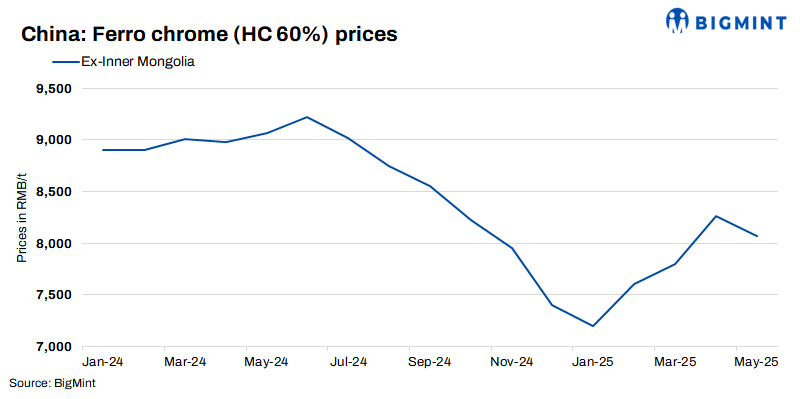 Although the Sino-US tariff policy supported a recovery in the stainless steel market, leading to stronger prices and increased activity, this positive momentum has yet to reach the ferro chrome sector. Steel mills remained cautious, purchasing only on a need basis due to subdued demand.