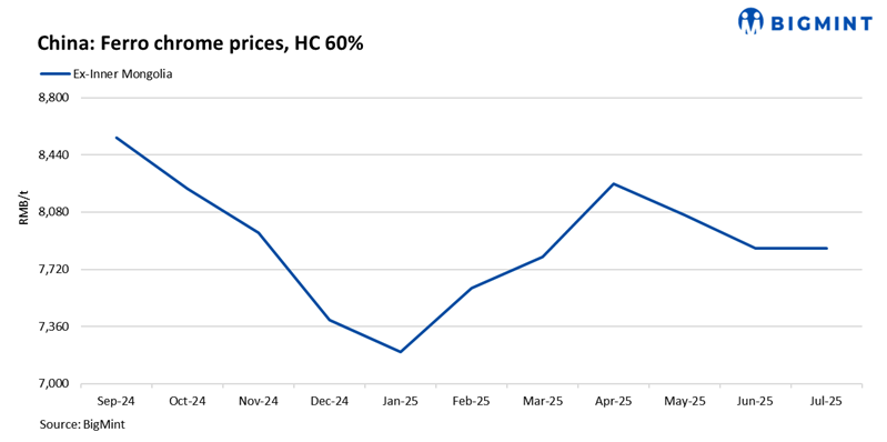 End-user weakness dampens consumption: Ferro chrome demand in the stainless-steel sector showed structural differences. In July, major steel mills reduced production, with a sharp drop in medium- and low-carbon ferrochrome purchases.