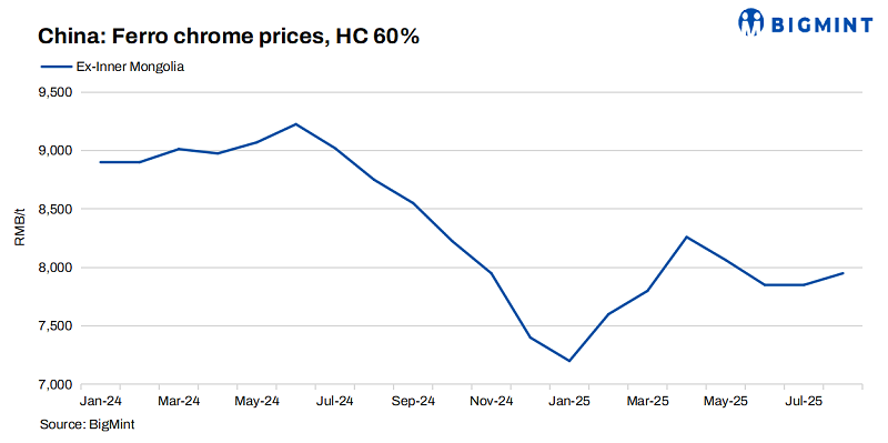 In the short term, ferro chrome prices may stay range-bound with strong volatility, supported by costs and supply constraints, though limited demand will cap further gains.