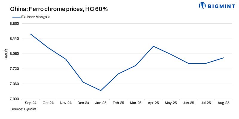 Export sentiment cautious amid EU review: Stainless steel producers are increasingly favouring low- and medium-carbon ferro chrome, driven by rising demand for stainless steel sheets in the automotive sector.