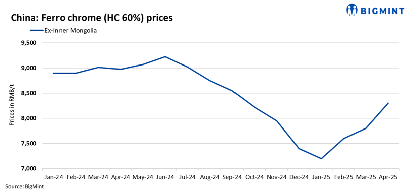 CBC: Chinese ferro chrome prices were on an upward trend w-o-w benefiting from rising raw material costs.