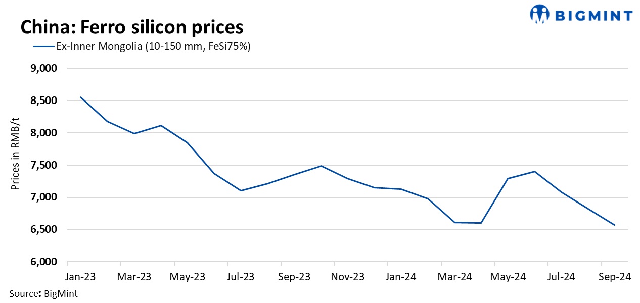 Ferro silicon futures largely stable: On 26 September, 2024, the Zhengzhou Commodity Exchange (ZCE) for January 2025 delivery of ferro silicon remained largely stable with prices inched up by RMB 42/t ($6/t) to RMB 6,266/t ($894/t) w-o-w, from RMB 6,224/t ($888/t) on 19 September, 2024.