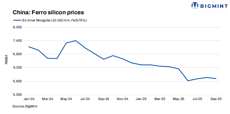 ZCE futures edge up: Ferro silicon futures on China’s Zhengzhou Commodity Exchange (ZCE) for November 2025 delivery edged up by RMB 108/t ($15/t) w-o-w to RMB 5,628/t ($790/t) on 10 September, compared to RMB 5,520/t ($775/t) on 3 September.