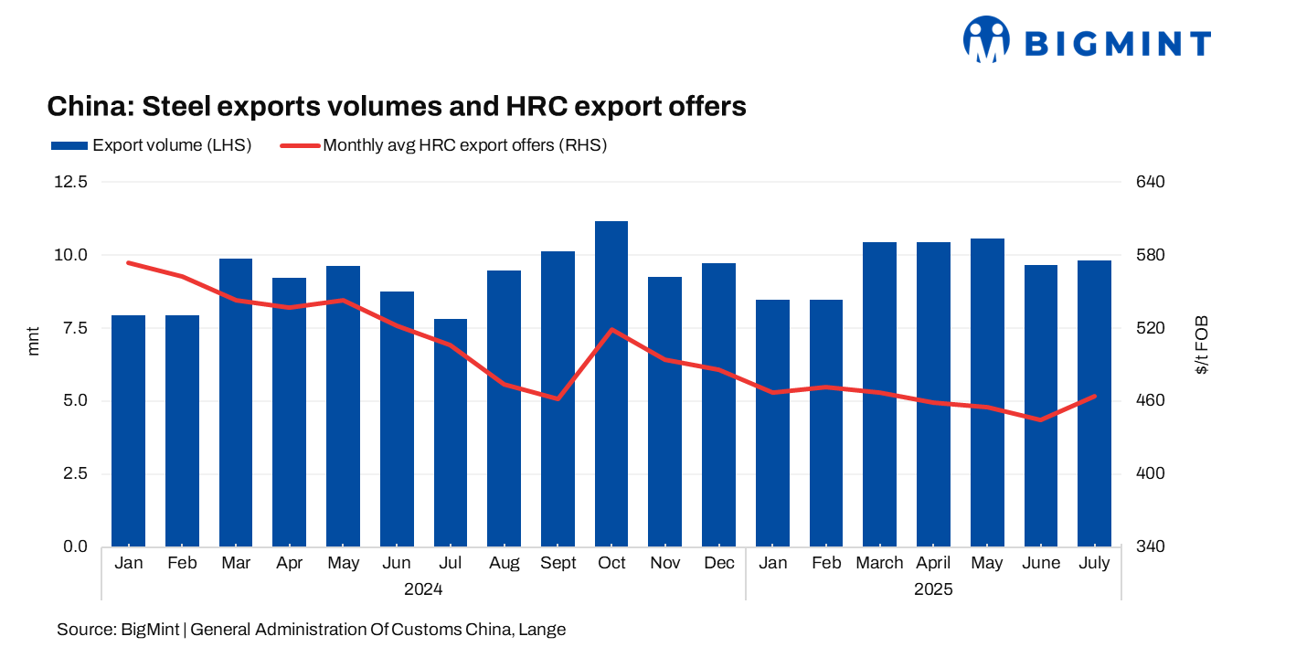 Domestic demand in the second half of the year is expected to be limited and may focus on overseas demand, particularly in relation to indirect exports. Direct steel exports are price-sensitive; and recent order intake has slowed after price increases, as per sources.