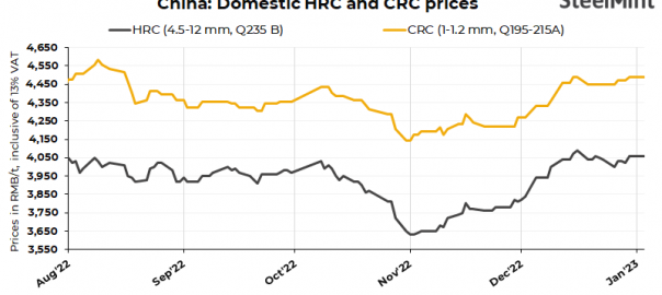 China’s domestic HRC and CRC prices remained unchanged d-o-d today. Current offers: