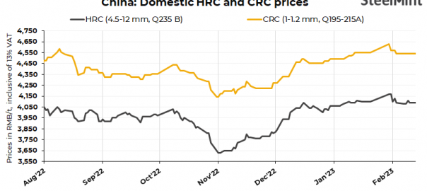 SHFE HRCs futures for May’23 delivery closed today at RMB 4,119/t ($604/t), falling by RMB 22/t ($3/t) d-o-d.