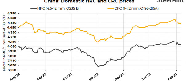 SHFE HRCs futures for May’23 delivery settled today at RMB 4,076/t ($600/t), up RMB 20/t ($3/t) d-o-d.