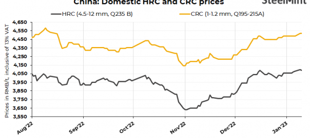 - HRC (4.5-12mm, Q235 B): RMB 4,090/t ($603/t)