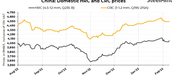 SHFE HRCs futures for May’23 delivery closed today at RMB 4,149/t ($612/t), up by RMB 63/t ($9/t) d-o-d.