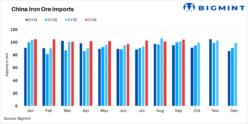 However, China’s iron ore imports rose by 5% y-o-y in January-September, 2024 compared to the same period of last year.
