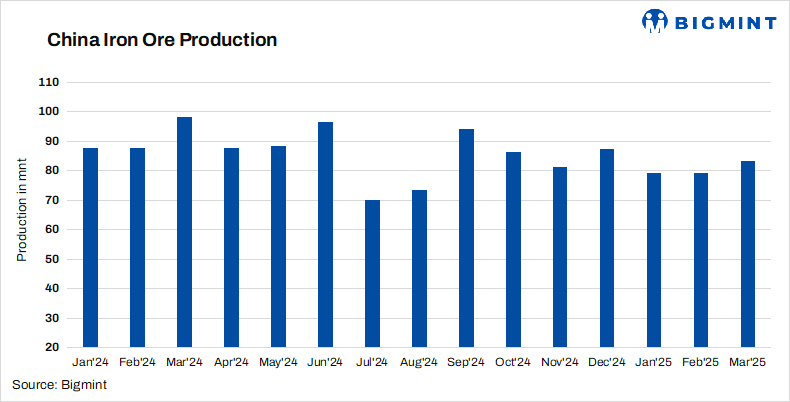 China: Iron ore ROM output slumps by 15% y-o-y in Q1CY’25
