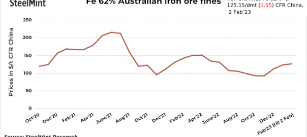 Benchmark iron ore fines (Fe62%) prices continued to fall by another $1.55/t d-o-d to $125.15/t CFR China on 2 Feb’23. In the secondary market, buying interest for seaborne cargoes remained muted, as import losses continued to drive participants away. Meanwhile, the trading activities at portside grew despite a drop in prices on the day.