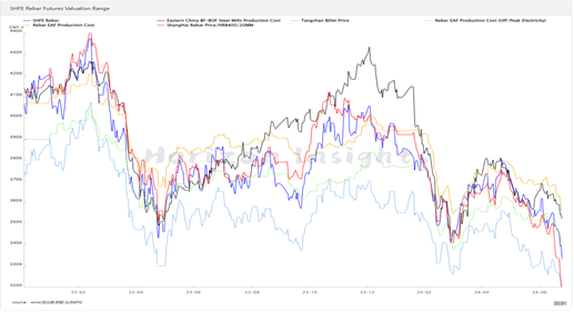 1. Currently, the price is lower than the lowest cost of EAF production, but from a spot price perspective, the derivative market price is still higher, with a 2410 contract premium of around 100 yuan/ton.