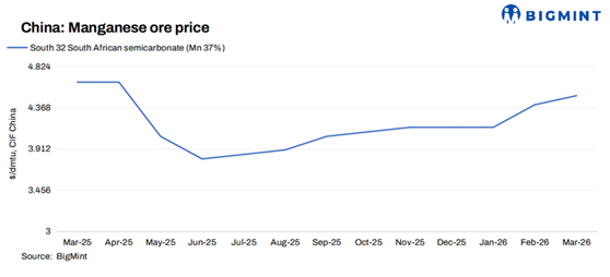 The firming prices were mainly supported by higher production costs and increased freights being borne by major overseas miners. The climb in global oil prices from the ongoing conflict in the Middle East has led to a rise in ocean freight costs, lifting the import costs for domestic manganese ore traders and encouraging them to raise their offers accordingly, Mysteel Global learnt.