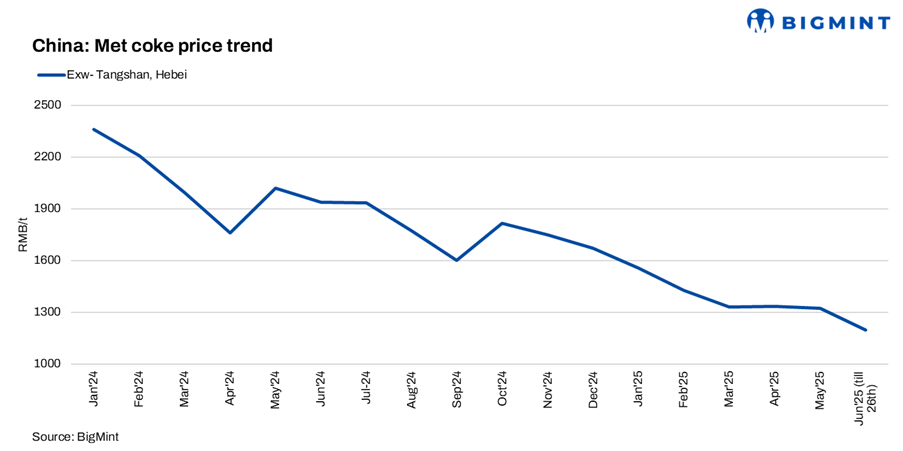 In the derivatives market, the most-traded met coke contract for September delivery on the Dalian Commodity Exchange dropped 2% from the previous day’s settlement price, ending the daytime trading session at RMB 1,351.5/t on Tuesday.