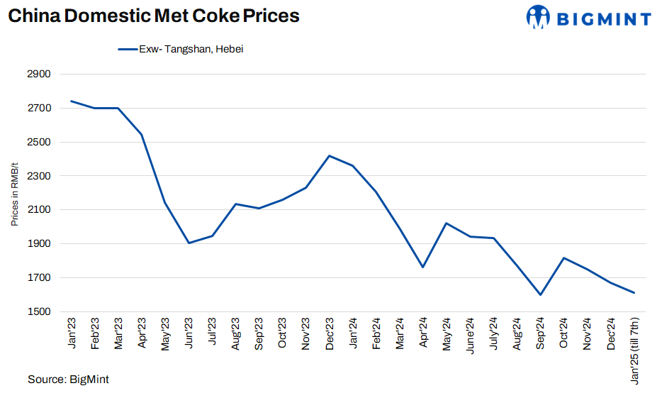 The forecast hinges primarily on the continued decline in coking coal prices, which has eroded any upward momentum for coke. Moreover, expected cuts in hot metal output at some steel mills are likely to further weigh on coke prices.