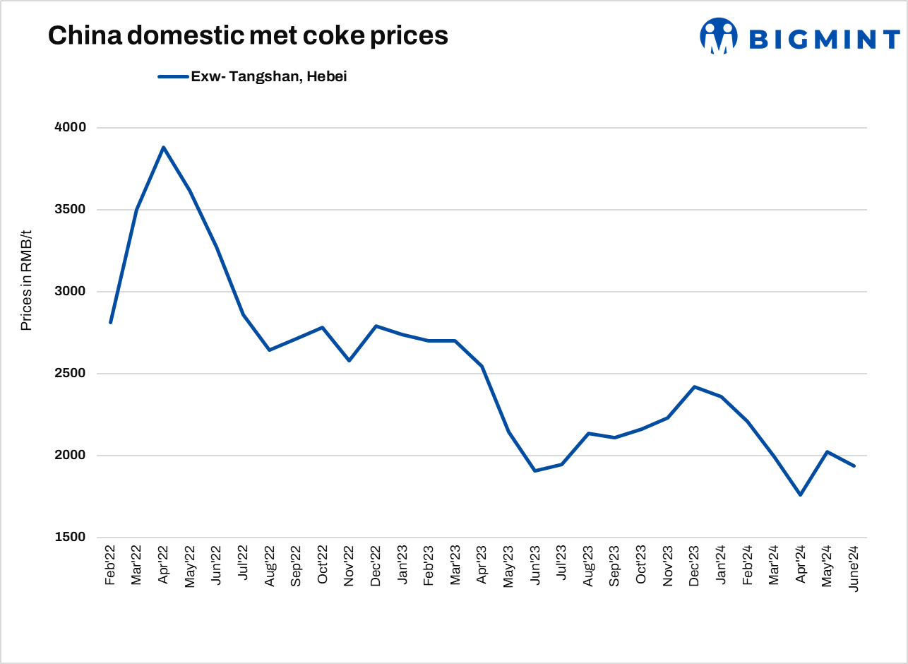China’s met coke producers have accepted another round of price drop yesterday (13 June’24). Met coke prices in Hebei’s Tangshan were assessed at RMB 1,910/t ($263/t), a drop of RMB 50/t ($7/t). This move followed an earlier reduction of yuan 100-110/mt in mid-May. The move was opposed by few coke producers. However, few said there was an oversupply of coke in China, supply and demand have now balanced, suggesting that prices may experience fluctuations.