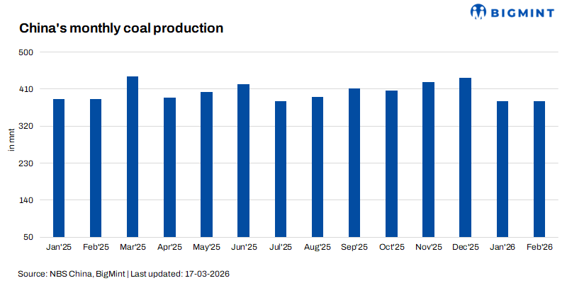 Coal production during the previous two months was mainly concentrated in January, as miners started to take leave gradually from late January to celebrate the CNY holiday that this year spanned 15-23 February, Mysteel Global observed.