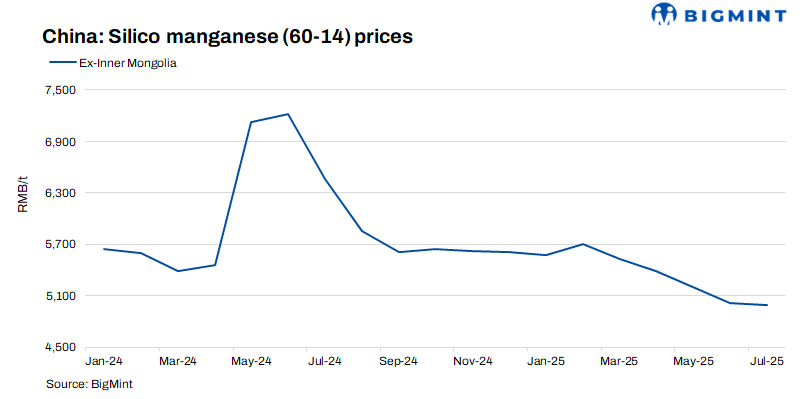 Silico manganese prices edged up, driven by supply constraints due to delayed capacity additions and maintenance in key regions. High electricity costs in the south further limited production. Steel mills resumed restocking, while firm raw material prices supported producers margins. Market sentiment also improved, supported by policies aimed at curbing low-price competition.